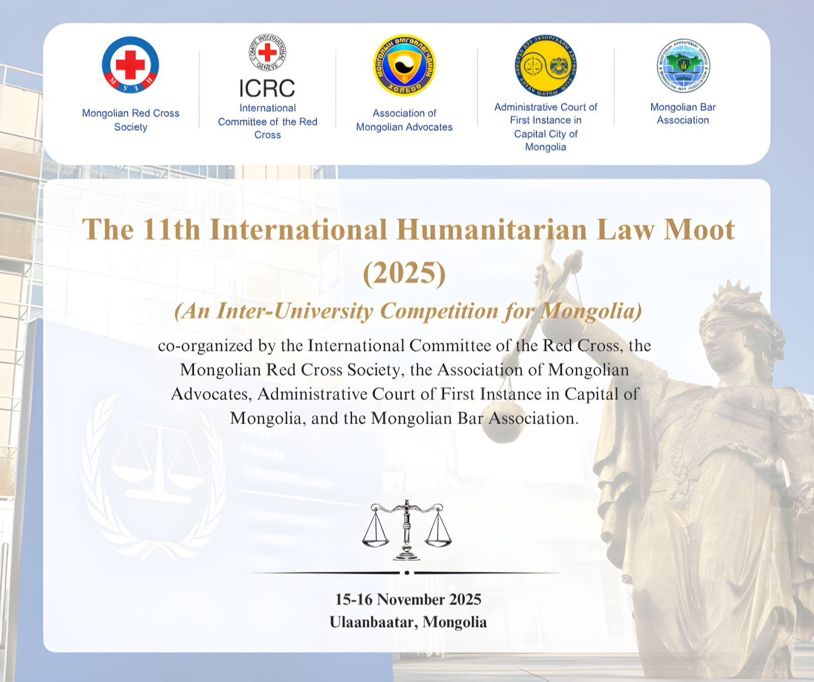 Олон улсын Улаан загалмай хороо, Монголын улаан загалмай нийгэмлэг, Нийслэл дэх Захиргааны хэргийн Анхан шатны шүүх, Монголын Хуульчдын холбоо, Монголын өмгөөлөгчдийн холбоо хамтран Олон улсын хүмүүнлэгийн эрх зүйн шүүхийн мэтгэлцээний тэмцээнийг 2025 оны 11 дүгээр сарын 15, 16-ны өдрүүдэд зохион байгуулна.