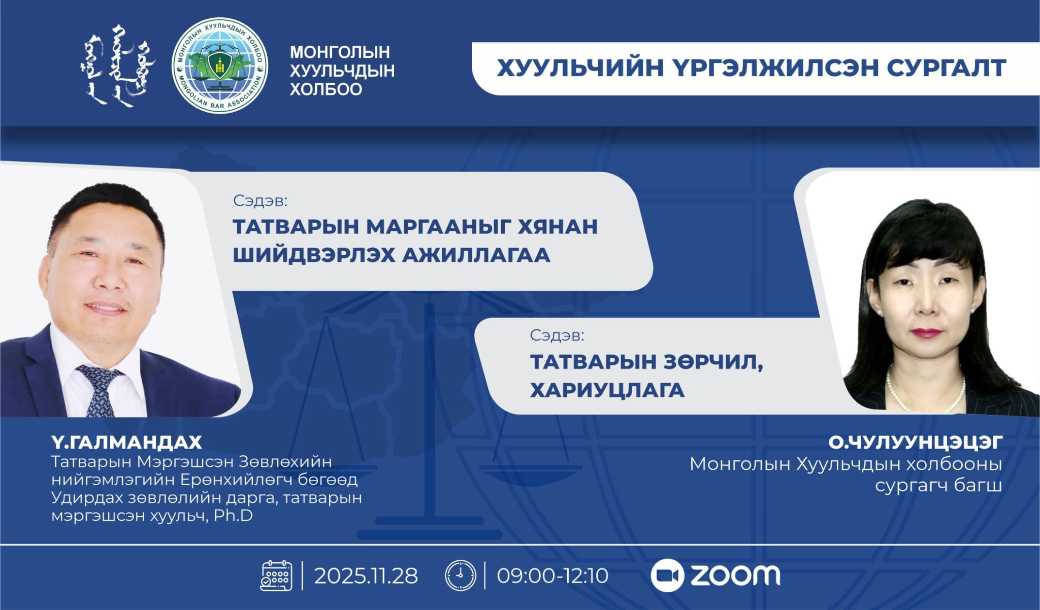 Жич: Хуульчийн үргэлжилсэн сургалтын 1 багц цаг тооцно.
