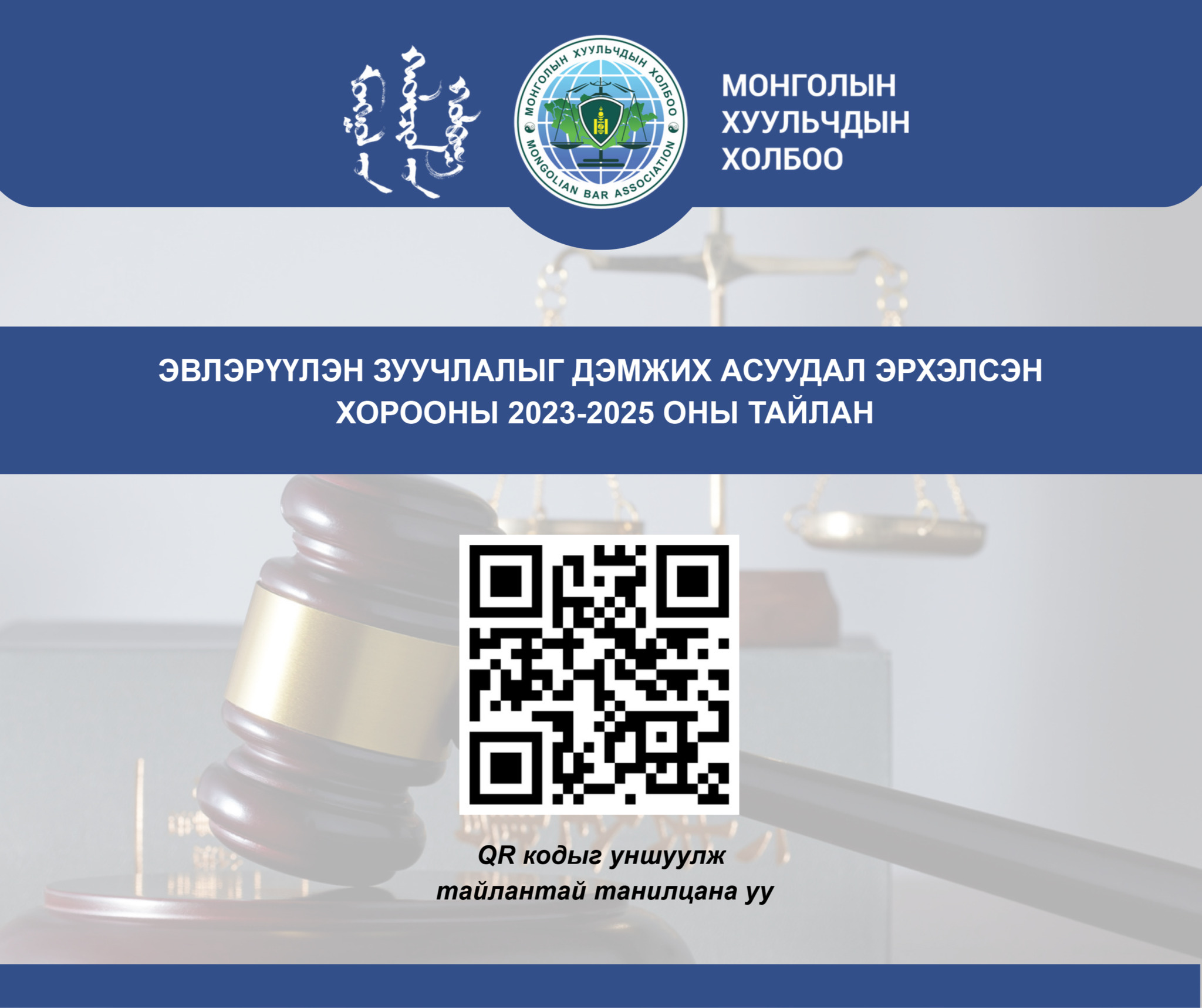 Монголын Хуульчдын холбооны Эвлэрүүлэн зуучлалыг дэмжих хорооны 2023-2025 оны нэгтгэсэн товч тайланг танилцуулж байна. Хорооны гишүүд та бүхэн ЭНД дарж танилцана уу.
