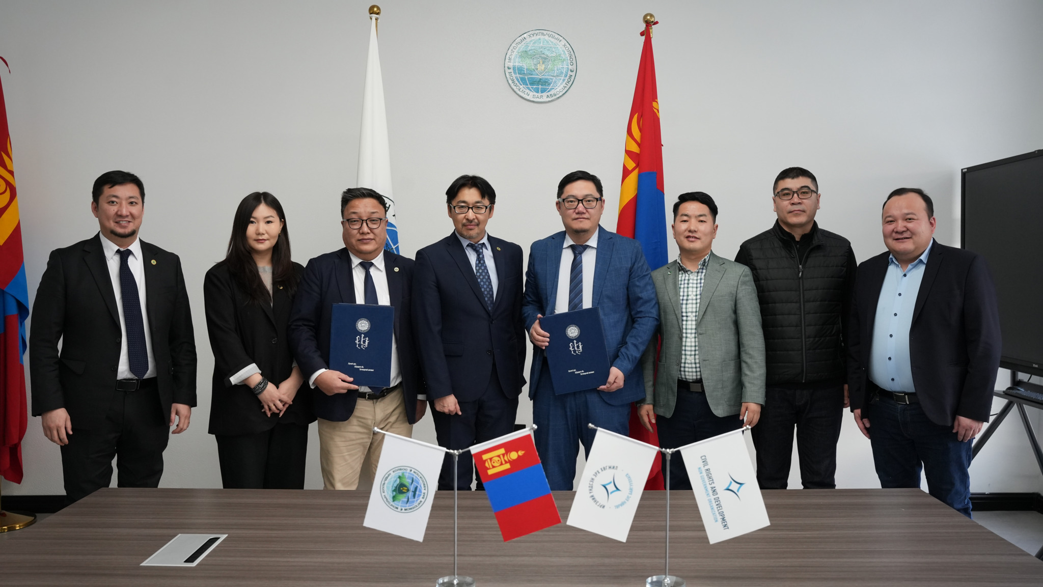 Монголын Хуульчдын холбоо нь “Иргэний үндсэн эрх, хөгжил” ТББ-тай хамтран ажиллах санамж бичиг байгуулж, өнөөдөр Монголын Хуульчдын холбооны Ерөнхийлөгч М.Мөнхбат, “Иргэний үндсэн эрх, хөгжил” ТББ-ын Удирдах зөвлөлийн дарга Ц.Цэцэнбаатар нар гарын үсэг зурж баталгаажууллаа.