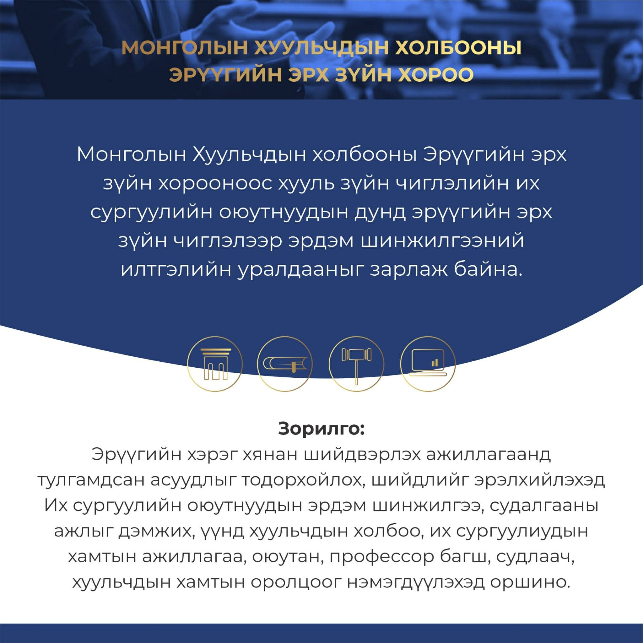 ХУУЛЬЧИЙН ҮРГЭЛЖИЛСЭН СУРГАЛТ ЗОХИОН БАЙГУУЛЛАА