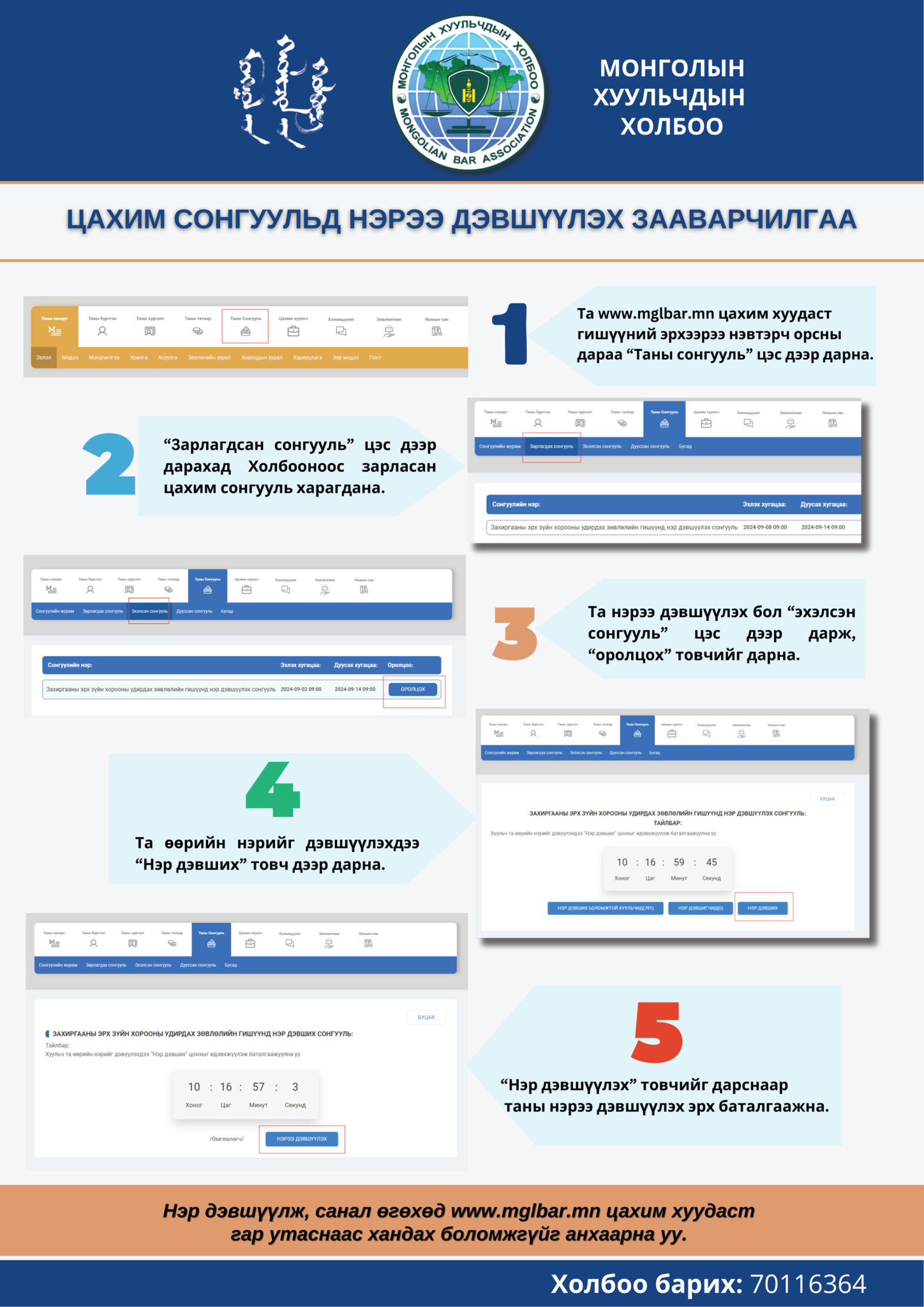Нэр дэвшүүлэх үйл ажиллагаа: 2026 оны 02 сарын 03 -ны өдрийн 09:00 цагаас эхлэн 2026 оны 02 дугаар сарын 05-ны өдрийн 23:59 цаг хүртэл