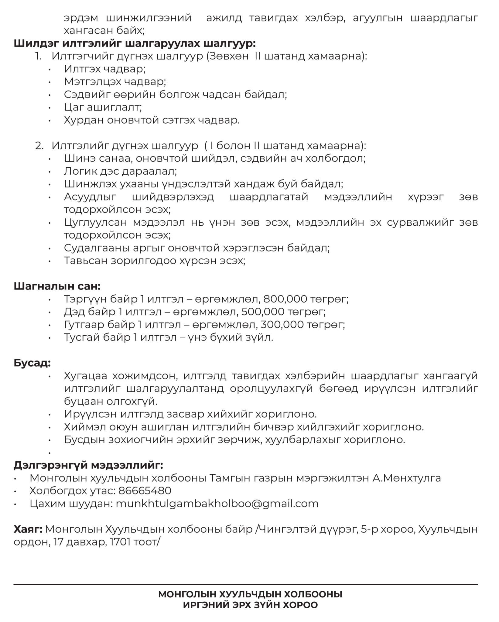 ХУУЛЬЧИЙН ҮРГЭЛЖИЛСЭН СУРГАЛТ ЗАРЛАГДЛАА